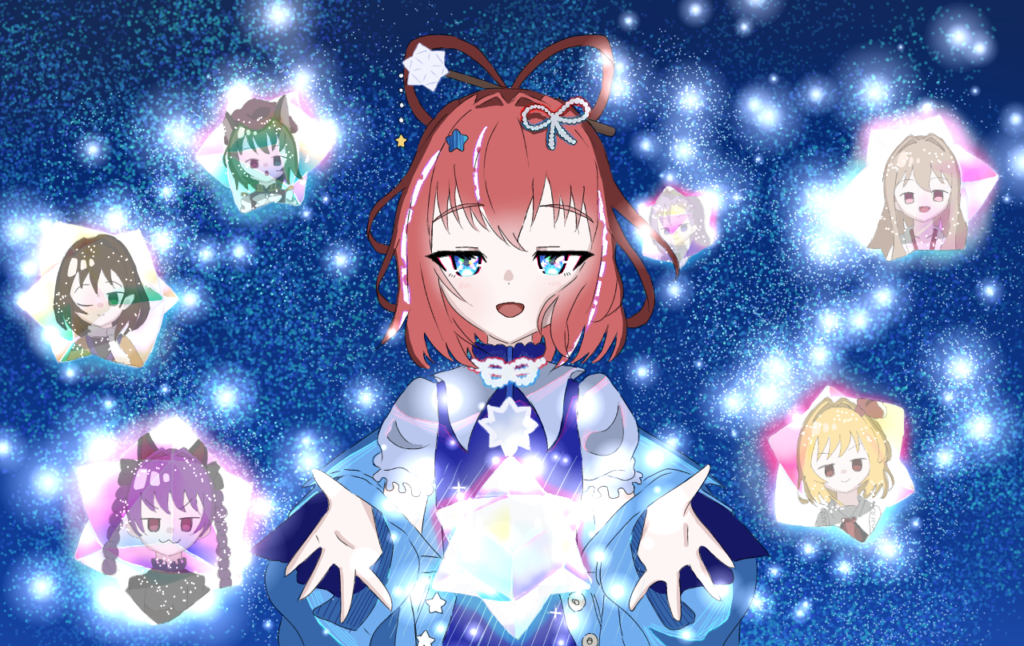 キ、哀音、ナツキ、紅葉、キラ)を描きました